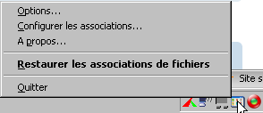 Pour associer ta nouvelle application il te faut commencer par faire un clic droit sur l'îcone de KFA dans la zone de notification de Windows (près de l'horloge comme le montre la capture). Ensuite cliques sur Configurer les associations; puis sur le bouton Nouveau de la fenêtre Types de fichiers associés aux applications portables. Il t'est alors demandé d'indiquer l'extension du fichier que tu souhaites associer (ex : .doc qui correspond à un document Word et que tu veux ouvrir avec OpenOffice). Quand tu as renté l'extension et validé, une nouvelle fenêtre s'ouvre : Sélection de l'application associée. Cette fenêtre te présente l'arborescence du dossier Apps de la Liberkey. (Si tu veux associer une application portable personnelle que tu as placé au préalable dans le dossier MyApps de ta Liberkey, il te faut alors remonter dans l'arborescence pour aller dans le dossier Liberkey\MyApps.) Tu choisis ensuite l'application correspondante dans son répertoire. Si c'est une application portable Liberkey il faut sélectionnner ApplicationLKL.exe et non directement Application.exe pour conserver totalement la portabilité. (Si c'est une application portable non Liberkey il faut sélectionner Application.exe dans ton dossier MyApps). La nouvelle extension apparait alors dans la fenêtre Types de fichiers associés aux applications portables. Pour certaines actions particulières elle peut être modifiée via le bouton Avancé. Je te laisse consulter pour cela le sujet : Association de fichiers avec KFA de la FAQ. Pour finir il te suffit de valider par le bouton Appliquer puis de refermer la fenêtre par le bouton OK. JP4U
