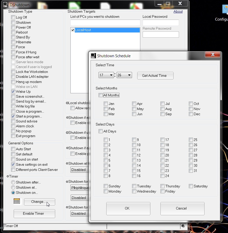 Good idea, thank you. And many thanks for the screenshot. What is irritating me quite a bit is the title of the window, "Shutdown Schedule", and the "Timer" also, "Shutdown on / at / after", it sounds like the computer would be shut downed. I would try it, but I cannot shut down my Notebook at the moment. "Shutdown type" has some items which does not seem to shut down anything, but "Shutdown type" also sounds like shutting down anything, e.g. the computer. Windows 10 Version 6.2 (Build 9200) Home, 64bit